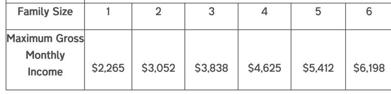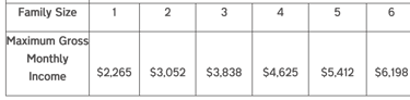 We ask that you already be on approved assistance of some sort (Medicare, Food Stamps, SSI, Meal Assitance, etc.) or that your family's income is below the amounts listed on the following chart. If you don't qualify, we'd still love to help! Call us for our regular rates.